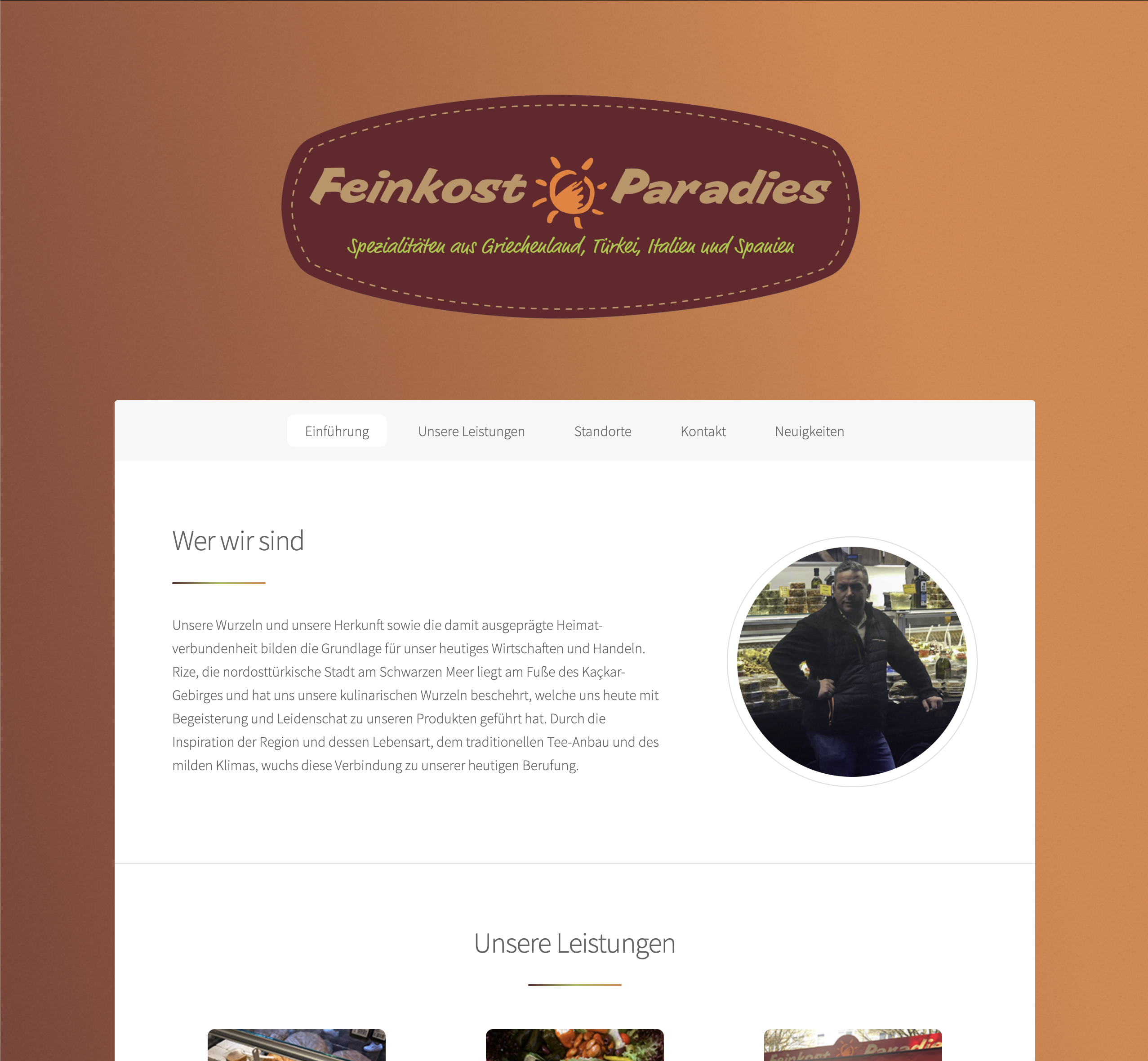 Webpräsenz eines Feinkostverkaufs inkl. Kontaktformular.